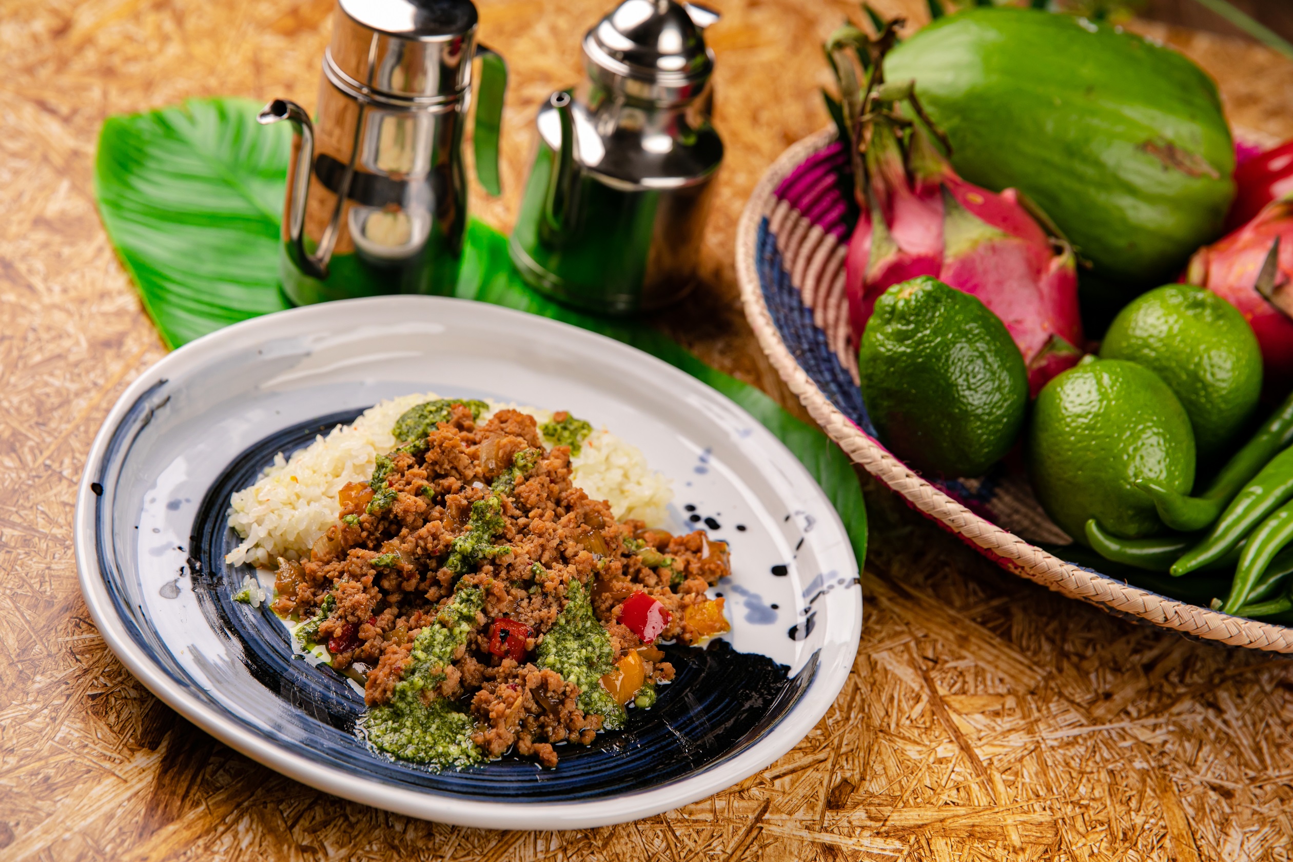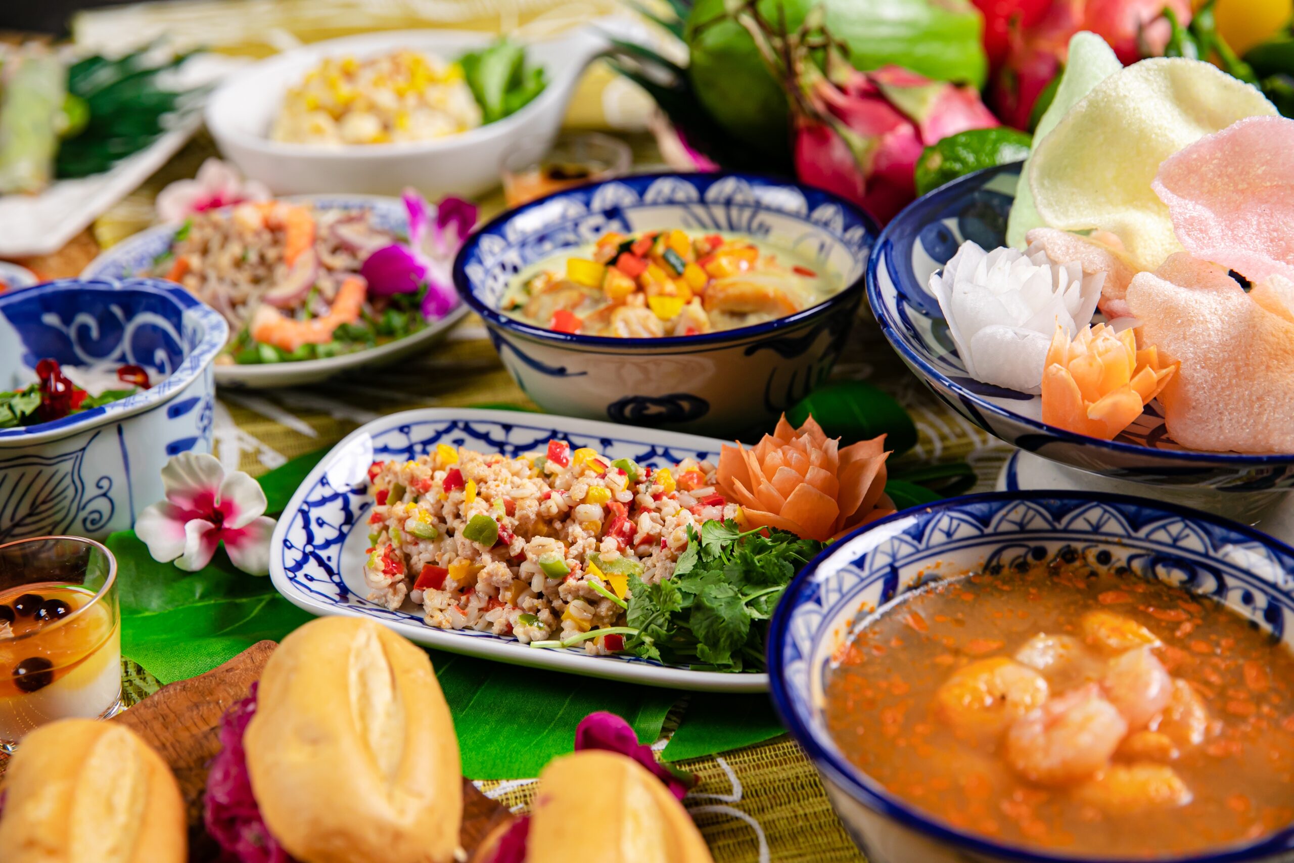 ホテル一畑特製ココナッツグリーンカレーやガパオライス、特製フォー、イベリコ豚の網焼きなど、アジアの香り豊かな料理をご用意。