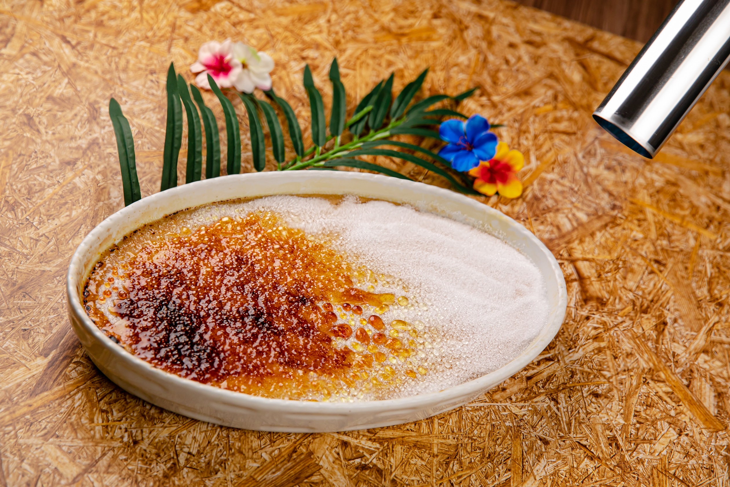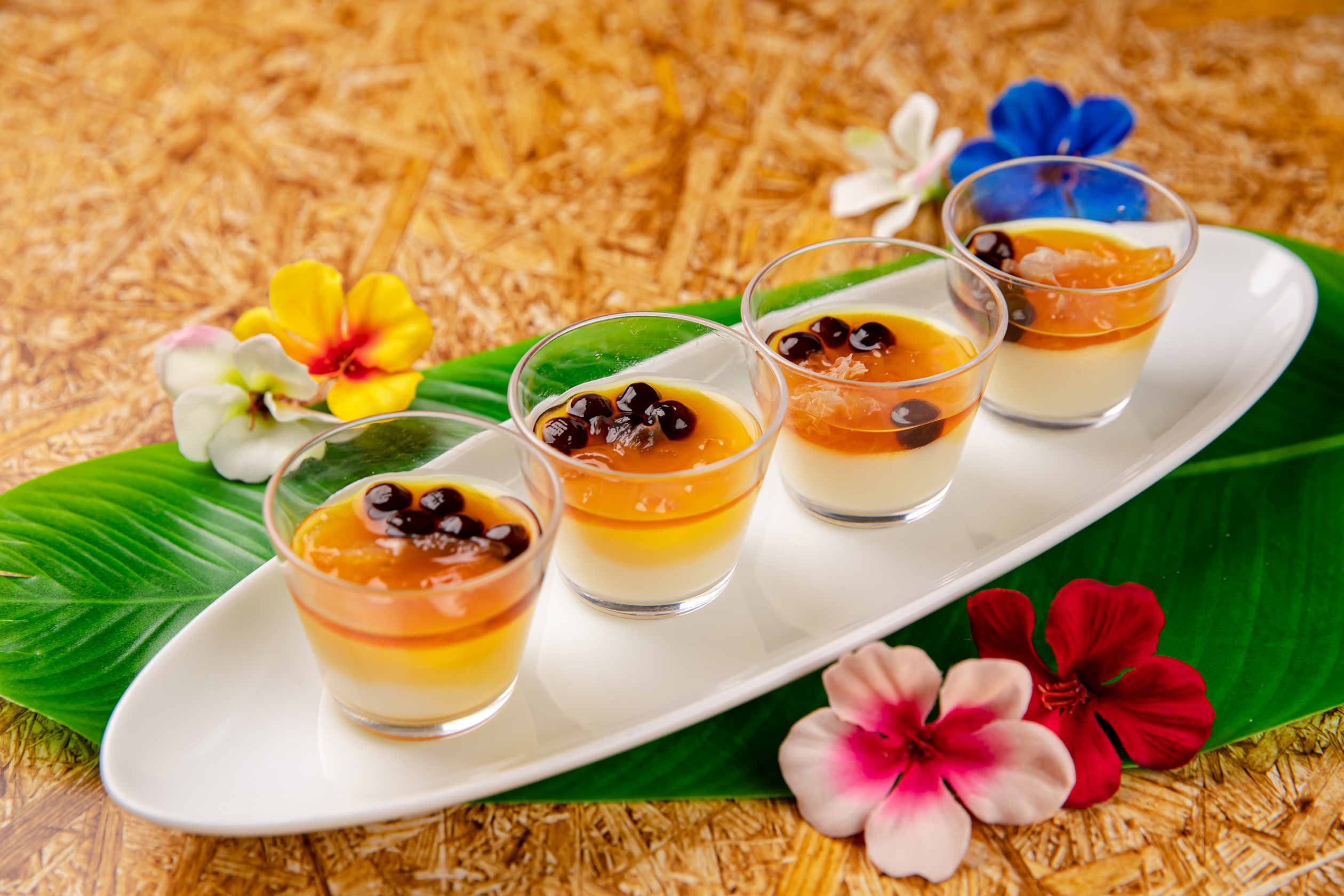 ジャスミン茶風ブリュレは会場で仕上げ、バーナーで炙る出来たての美味しさをお楽しみいただけます。